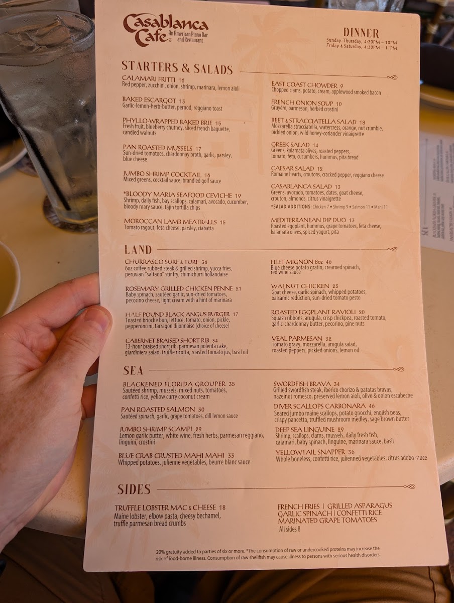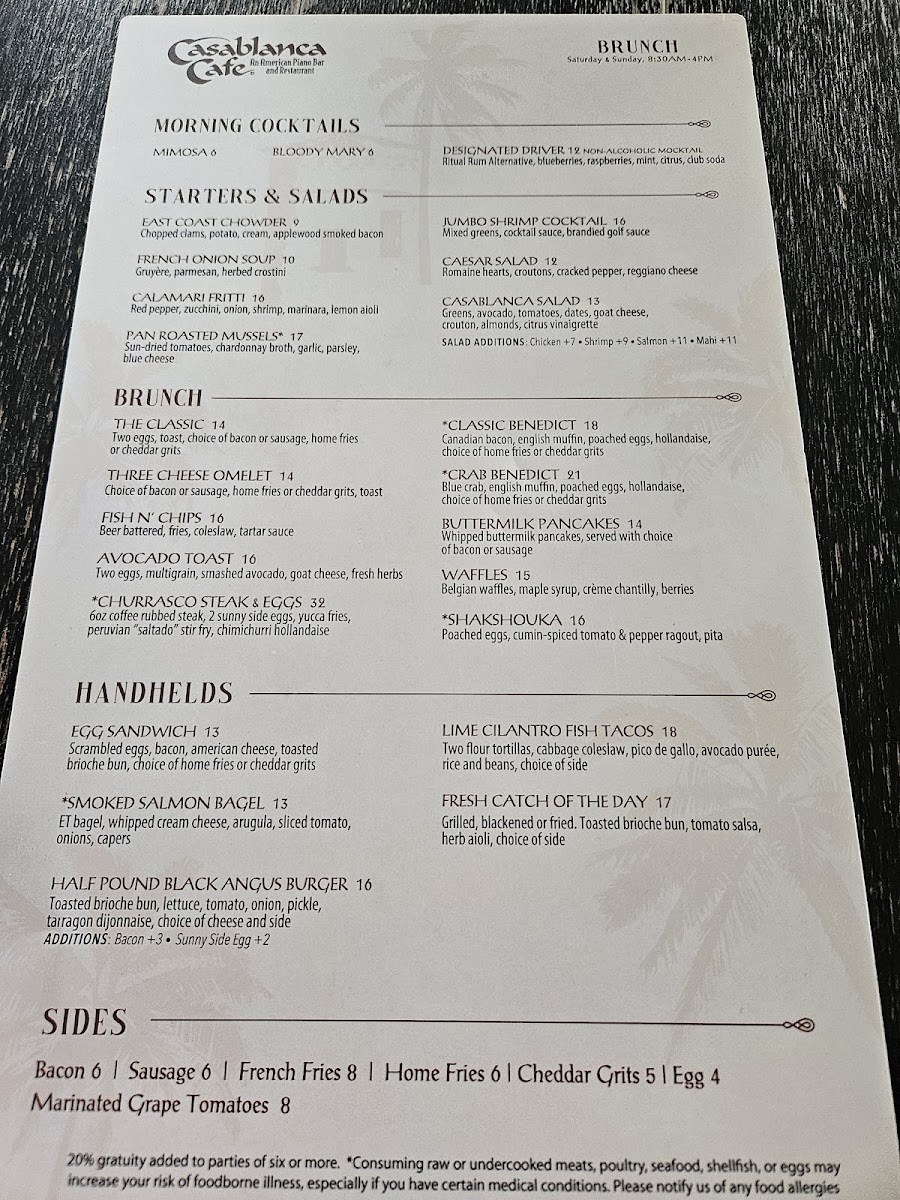 Introducing the Menu at Casablanca Cafe - FL 33304